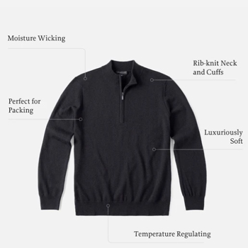 The Unbound Merino Cashmere Quarter-Zip Sweater embodies the best of what a premium travel or fashion-forward brand can offer: